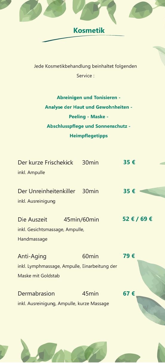 Mein Name ist Kerstin und ich habe 2012 meine Ausbildung zur staatlich annerkanten Kosmetiker in erfolgreich abgeschlossen. Dabei wurde ich als Kammersiegerin der Handwerkskammer Mittel franken ausgezeichnet. Im Laufe meiner Karriere habe ich umfassende Erfahrungen gesammelt,