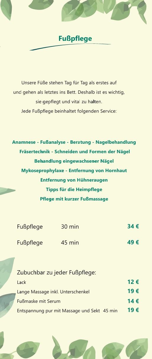 Fußbehandlungen medizinischer Art, für die Pflege oder einfach zum Entspannen.